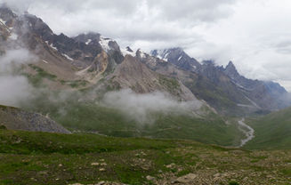 L’après-midi débute par une longue descente vers les Chalets de la Raja et le village des Chapieux. On suit alors une longue route en pente douce à l’ombre du Haut-Val des Glaciers et de l’Aiguille du même nom.